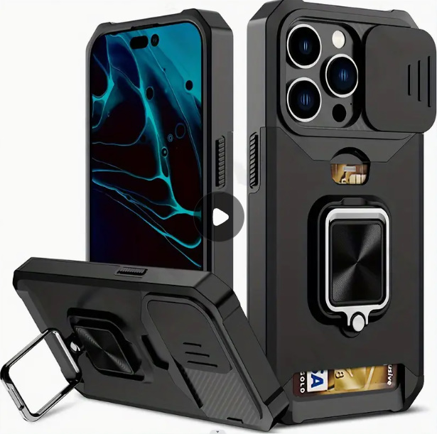아이폰17 프로맥스, 아이폰16 프로맥스, 아이폰15 프로맥스, 아이폰14 프로맥스 호환 메탈 스탠드 및 카드 슬롯이 포함된 아이폰 케이스