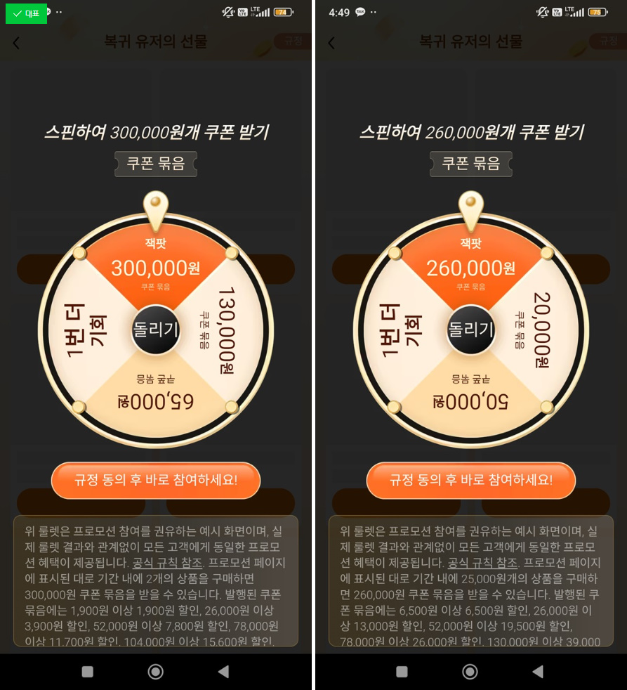 테무 앱을 꾸준히 이용하다보면 아래와 같이 수시로 룰렛 이벤트를 통해 할인코드 및 쿠폰이 제공이 됩니다.