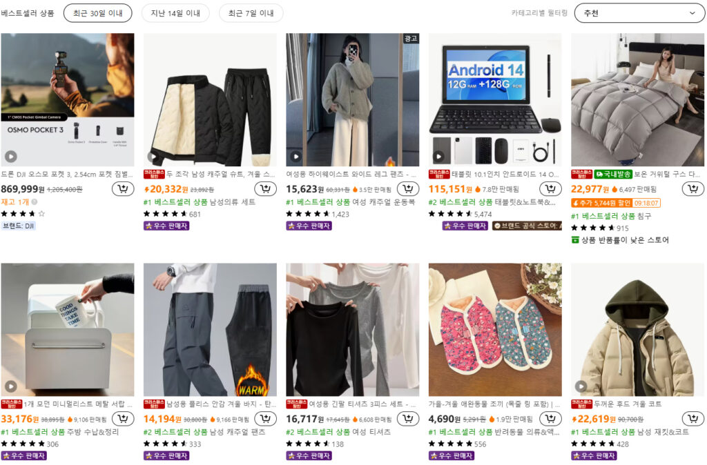 무엇을 사야할지 잘 모르겠다면 베스트상품에서 쇼핑하는 것을 추천!